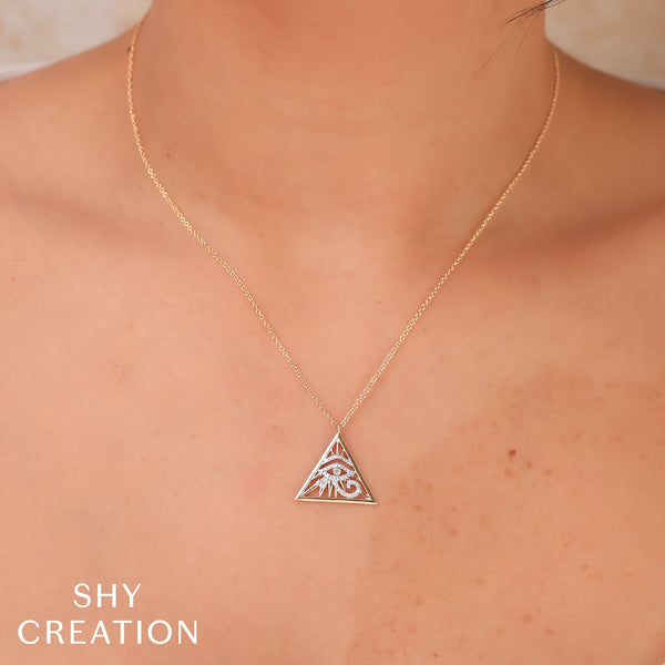 0.13CT 14K W/G DIAMOND EYE TRIANGLE NECKLACE