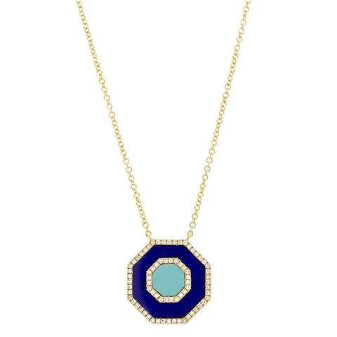 0.19CT DIAMOND & 1.18CT LAPIS & COMPOSITE TURQUOISE 14K Y/G OCTAGON NECKLACE