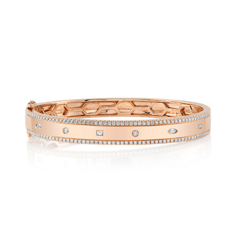 1.08CT 14K R/G DIAMOND BAGUETTE MARQUISE BANGLE