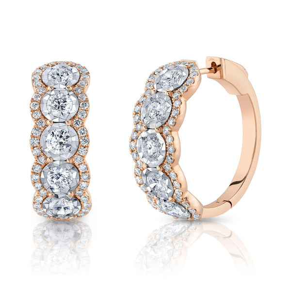 2.90CT 14K R/G DIAMOND HOOP EARRING