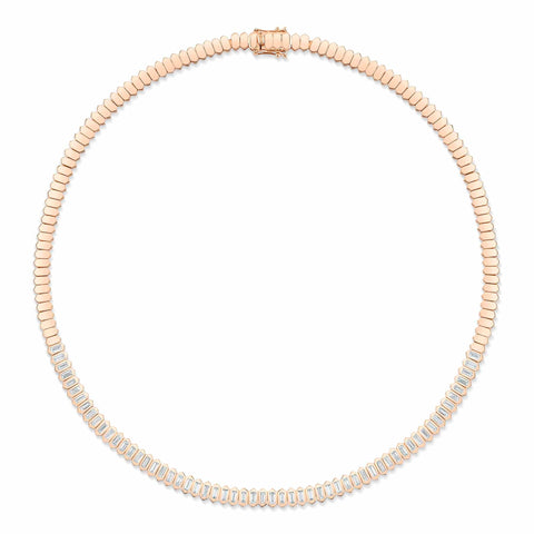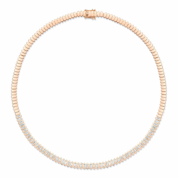 3.01CT 14K R/G DIAMOND BAGUETTE BEZEL TENNIS NECKLACE