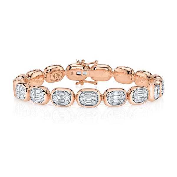 3.40CT 14K R/G DIAMOND BAGUETTE TENNIS BRACELET