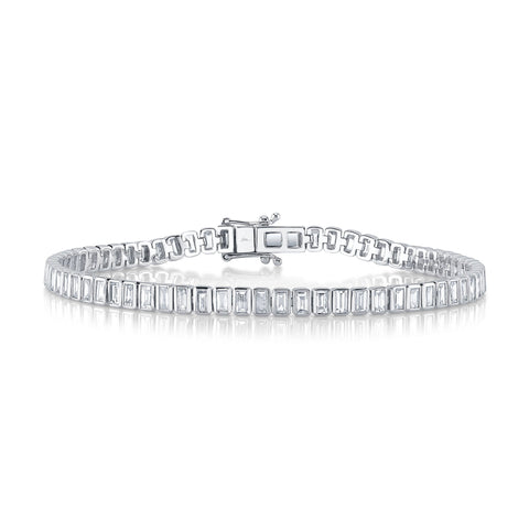 3.57CT 14K W/G DIAMOND BAGUETTE BEZEL TENNIS BRACELET