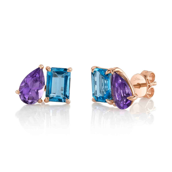 3.66CT 14K R/G AMETHYST & BLUE TOPAZ STUD EARRING