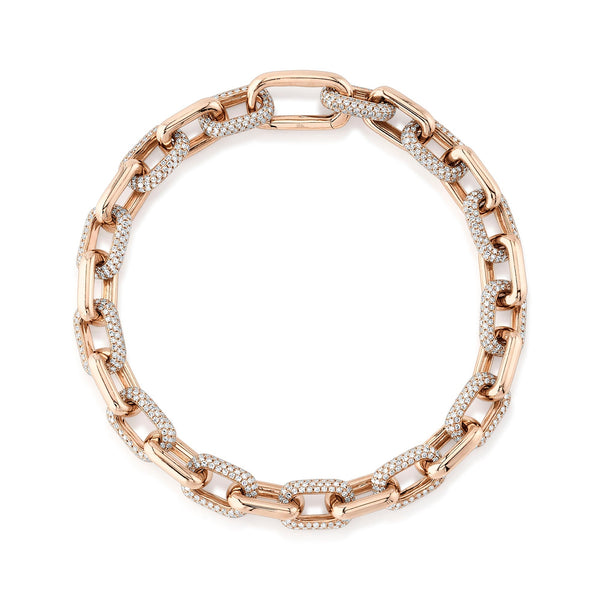 3.67CT 14K R/G DIAMOND PAVE PAPER CLIP LINK BRACELET