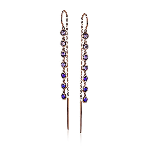 Exquisitely crafted 14K gold drop earrings featuring seven circular topaz gemstones arranged in a graceful cascading formation. The elegant drop design allows each vibrant topaz to catch the light beautifully, creating a refined and eye-catching look perfect for both special occasions and everyday sophistication.