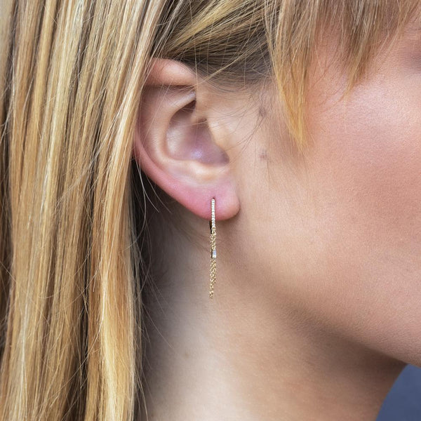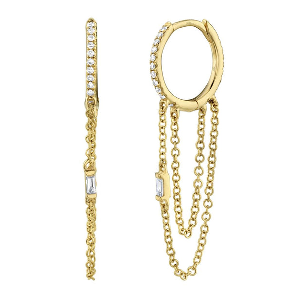 0.18CT 14K Y/G DIAMOND BAGUETTE HUGGIE CHAIN EARRING