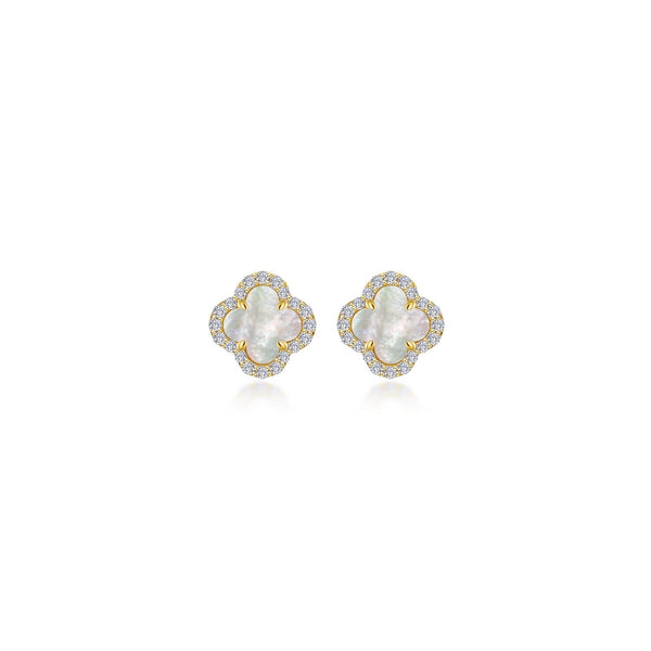 Timeless elegance. Each of these charming halo stud earrings features a cultured mother-of-pearl good-luck symbol surrounded by Lafonn Lassaire simulated diamonds in sterling silver using Lafonn's exclusive TR Gold, a new and improved plating process that preserves the rich color of gold and enhances the wearability of our gold-plated styles.