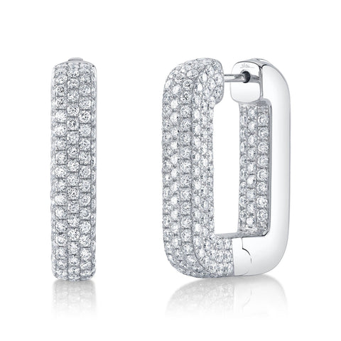 4.13CT 14K W/G DIAMOND PAVE RECTANGLE HOOP EARRING