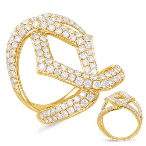 This fashion diamond ring is available in 14K Yellow Gold. There are a total of 124 stones. There are round diamonds with a total carat weight of 1.70ct set in a Micro Pave setting