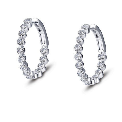 Classic hoops for every occasion. These inside out hoop earrings are set with Lafonn's signature Lassaire simulated diamonds in sterling silver bonded with platinum. 25 mm diameter.