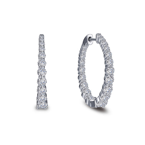 Classic hoops for every occasion. These inside out hoop earrings are set with Lafonn's signature Lassaire simulated diamonds in sterling silver bonded with platinum. 25mm diameter.