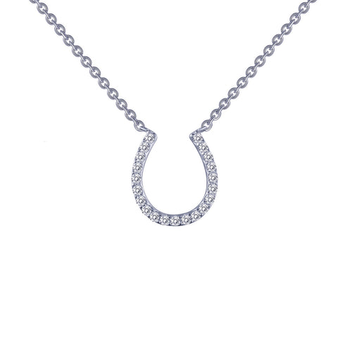 Fun and playful. This horseshoe necklace is set with Lafonn's signature Lassaire simulated diamonds in sterling silver bonded with platinum.