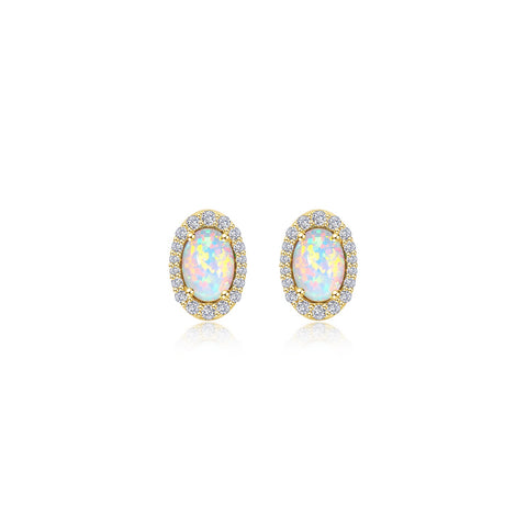 Inspired by the charm of the past, each of these oval halo stud earrings features a simulated opal surrounded by Lafonn's signature Lassaire simulated diamonds in sterling silver using Lafonn's exclusive TR Gold, a new and improved plating process that preserves the rich color of gold and enhances the wearability of our gold-plated styles.