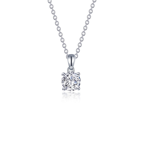 A timeless classic. This solitaire pendant necklace is set with a Lafonn's signature Lassaire simulated diamond in sterling silver bonded with platinum. The pendant comes on an adjustable 20" chain.