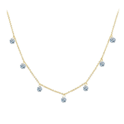 Mesmerizing shimmer. This frameless raindrop necklace features 7 Lassaire simulated diamonds dangled on a chain in sterling silver using Lafonn's exclusive TR Gold, a new and improved plating process that preserves the rich color of gold and enhances the wearability of our gold-plated styles.