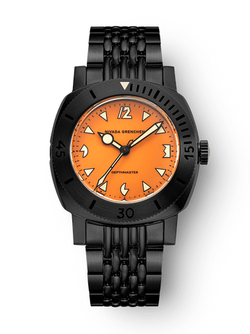 Nivada Grenchen strikes again with the bold and captivating Black Pumpkin Depthmaster, a watch that merges vintage charm with modern flair. Taking inspiration from the original Depthmaster released in the mid-1960s, this reissue brings a fresh twist to a timeless design. The Black Pumpkin captures attention with its striking dark orange full-luminova dial, which shines vividly in low-light conditions, perfectly paired with bold printed markers for a touch of rugged elegance. With its 39mm cushion-shaped stainless steel case, this dive watch is built to withstand the pressures of deep-sea exploration—boasting an impressive 100 ATM water resistance. Whether you're diving into the abyss or navigating daily life, the Black Pumpkin Depthmaster promises reliability, style, and heritage with every glance.
