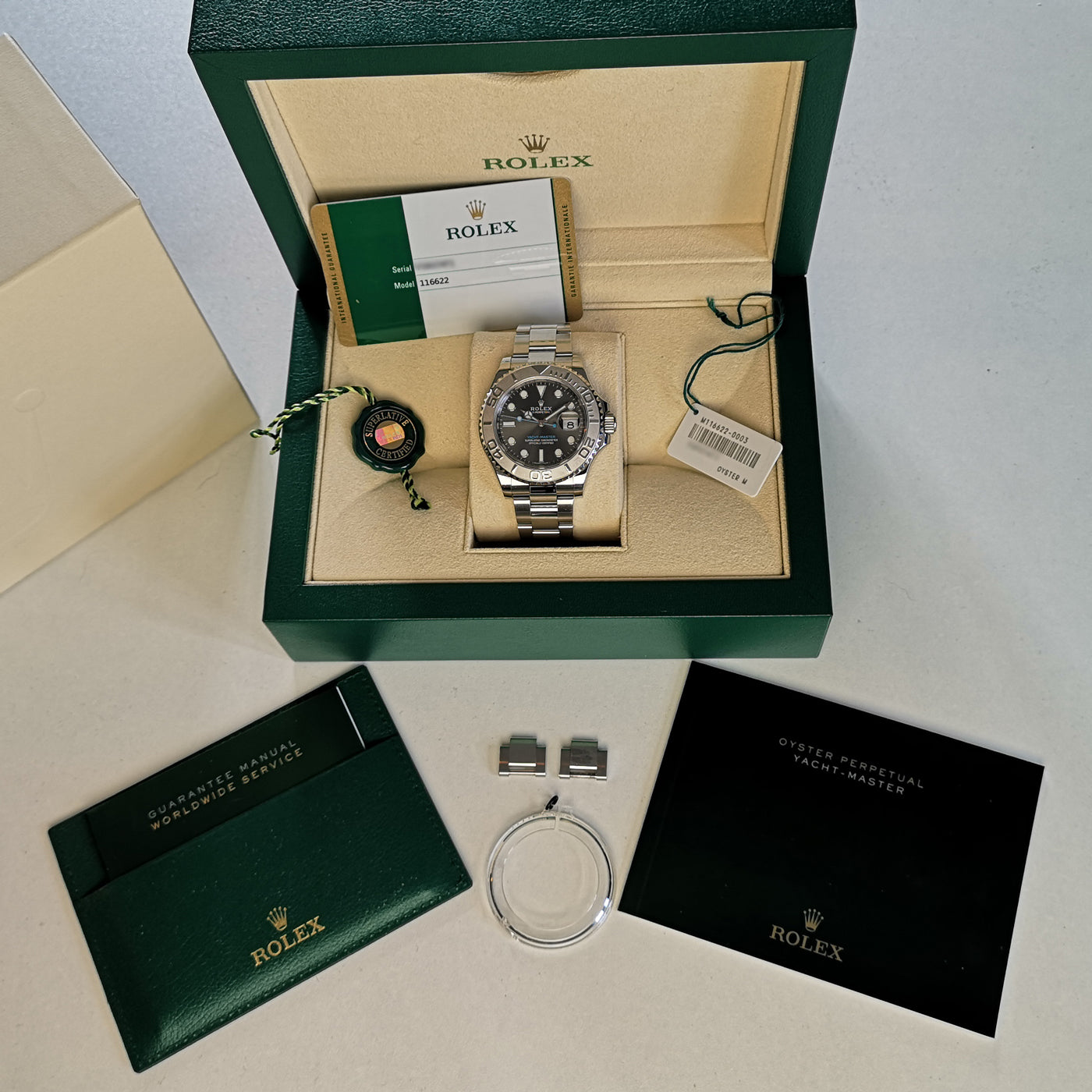The Yacht-Master’s bidirectional rotatable 60-minute graduated bezel is made entirely from precious metals or fitted with a Cerachrom insert in high-tech ceramic. The raised polished numerals and graduations stand out clearly against a matt, sand-blasted background.