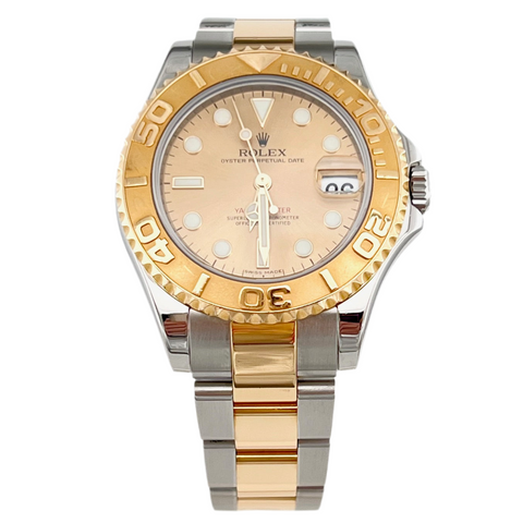ROLEX YACHT-MASTER 37MM 18K YELLOW GOLD, STAINLESS STEEL, CHAMPAGNE DIAL, AND OYSTER BRACELET. THIS ROLEX IS LIKE NEW WITH A BOX STOP BY OR CALL US AT ANY TIME FOR MORE INFORMATION