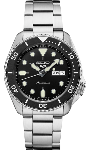 Show your style. Make your move. For over 50 years, Seiko 5 Sports has delivered consistently high levels of reliability, durability, and performance. For dependable timekeeping in your everyday life, this exceptional watch is powered by an automatic movement with a power reserve of approximately 41 hours and features a day/date calendar, LumiBrite hands and markers, and a see-through caseback. With a durable stainless steel case and bracelet and a black dial framed by a black rotating bezel, this versatile watch is 100 meter water resistant- perfect for your style no matter what your day has in store.