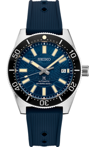 1965 Diver's Watch Modern Re-interpretation Save the Ocean Limited Edition. Designed for those who treat life as the ultimate adventure, the Seiko Prospex line meets every challenge with technological excellence and style. Part of a rich legacy of innovation in high-intensity timekeeping, Prospex continues to celebrate a long history of sports watch excellence with recreations and reinterpretations of landmark achievements. Updated with today's technology and materials, and a sleeker and thinner profile, this extraordinary Limited Edition, available only in a controlled production run of 1,300 with the serial number engraved on each caseback, reimagines Seiko's 1965 diver's watch, the first made in Japan, with a water resistance, legibility and durability that made it standard equipment on the Japanese Antarctic Research Expedition (JARE), and propelled Seiko into the forefront of dive watch design. Paying tribute to underwater archaeology, this reinterpretation features a blue sunray dial with a design inspired by ancient astrolabes, used to find latitude and time based on the position of the stars and the sun. The caliber 8L35 26-jewel automatic movement, hand-assembled at Seiko's Shizukuishi watch studio with the increased torque necessary for smooth operation of the enlarged diver's watch hands, beats at a frequency of 28,800 vibrations per hour, with a power reserve of approximately 50 hours, and provides manual winding capability. Following ISO standards for scuba diving to depths of up to 200 meters, this superbly functional watch, in stainless steel with fine Zaratsu polishing, also includes a date calendar, LumiBrite markers and hands for enhanced legibility, dual curved sapphire crystal with anti-reflective coating on the inner surface, screwdown crown and caseback, blue uni-directional rotating elapsed timing bezel and blue silicone strap. As part of Seiko's "Save the Ocean" campaign, a portion of the proceeds from sales of this exceptional Limited Edition will be contributed to marine conservation. Packaged in a Limited Edition collectors' box. 200m Water Resistant
