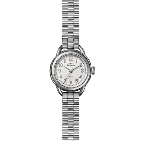 We refined the silhouette of our iconic Runwell watch by tapering the lug, simplifying the dial, and adding the tiniest pop of red—resulting in all new design just for her, The Shinola Runabout. This 25mm timepiece was built to be an effortless accessory that captures the essence of Runwell, but elevates its features with an approachable, everyday utility. From its classic white dial to its distinctive polished stainless steel radiance and wavy bar link bracelet, every detail was designed to move with you through the decades.