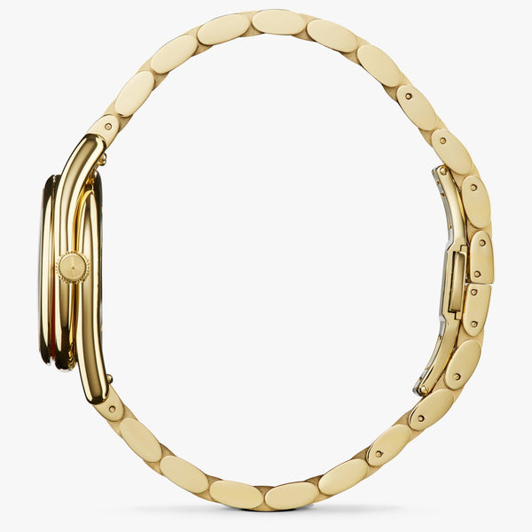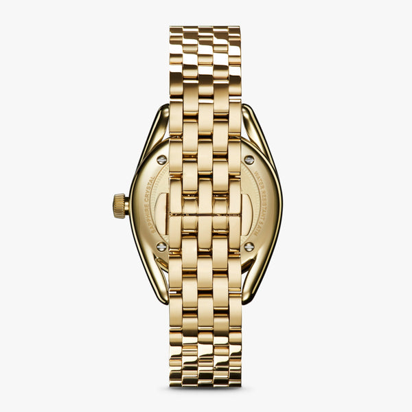 Quick Release Five-Link Bracelet: Utterly sophisticated and built for everyday wear, the polished five-link stainless steel bracelet with a PVD gold finish is as stunning as the watch itself.