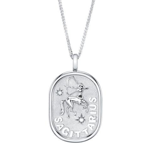 0.02CT 14K W/G DIAMOND ZODIAC SAGITTARIUS ARCHER STAR MATTE CHOPIN CHAIN NECKLACE