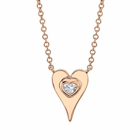0.09CT 14K R/G DIAMOND BEZEL HEART NECKLACE
