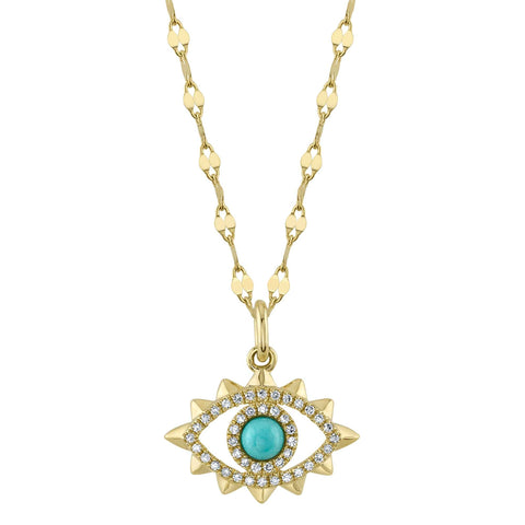 0.10CT DIAMOND & 0.20CT COMPOSITE TURQUOISE 14K Y/G EYE NECKLACE
