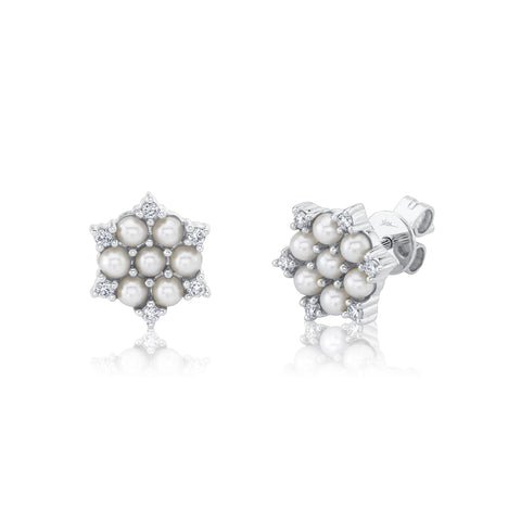 0.12CT 14K W/G DIAMOND & CULTURED PEARL STUD EARRING