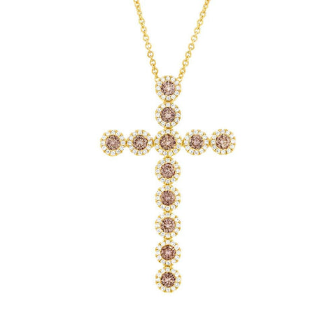 1.51CT 14K Y/G WHITE & CHAMPAGNE DIAMOND CROSS NECKLACE