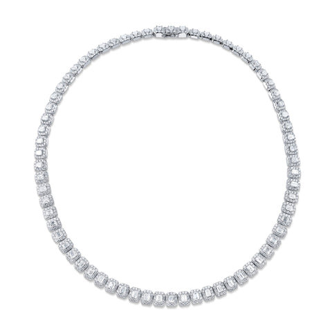 13.80CT-CTR(EMERALD) 8.90CT-SIDE 14K W/G DIAMOND TENNIS NECKLACE