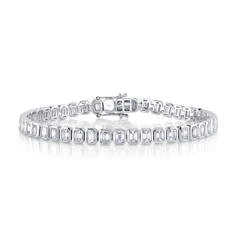 6.62CT 14K W/G DIAMOND EMERALD TENNIS BRACELET
