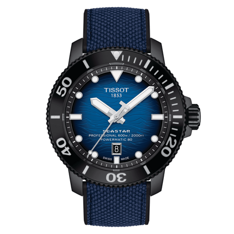Wherever you go and whatever adventure you find yourself on, you’ll find balance with the Seastar 2000 Professional Powermatic 80 on your wrist. This is a highly technical, assertive watch that’s brimming with easy confidence, whether you take it deep into the urban jungle, or hundreds of meters below the surface of the sea. With its chic, stylish profile, it’s a versatile piece you can wear everyday. But with its muscular architecture, up to 60bar (600m / 2000ft) of water resistance and ISO 6425 (2018) diver’s watch certification, it’s the tool watch you can rely on when you need it most, too. Specifications include a uni-directional rotating bezel with a ceramic bezel insert, a screw-down crown, an automatic helium escape valve and a water-proof black rubber and blue fabric strap. A black or gradient blue to black dial with a wave motif is the symbol of its impeccable underwater credentials. So just where will you go?